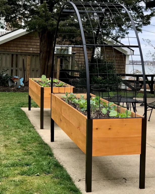 Unlock the full potential of your Vermont-made elevated planter box or raised bed by adding this trellising arch to it. Tall enough to grow tomatoes underneath, you can plant all your favorite herbs and veggies in the center and robust climbing plants at the sides. Or, make a walk-through arch by linking two planter boxes or raised beds together.